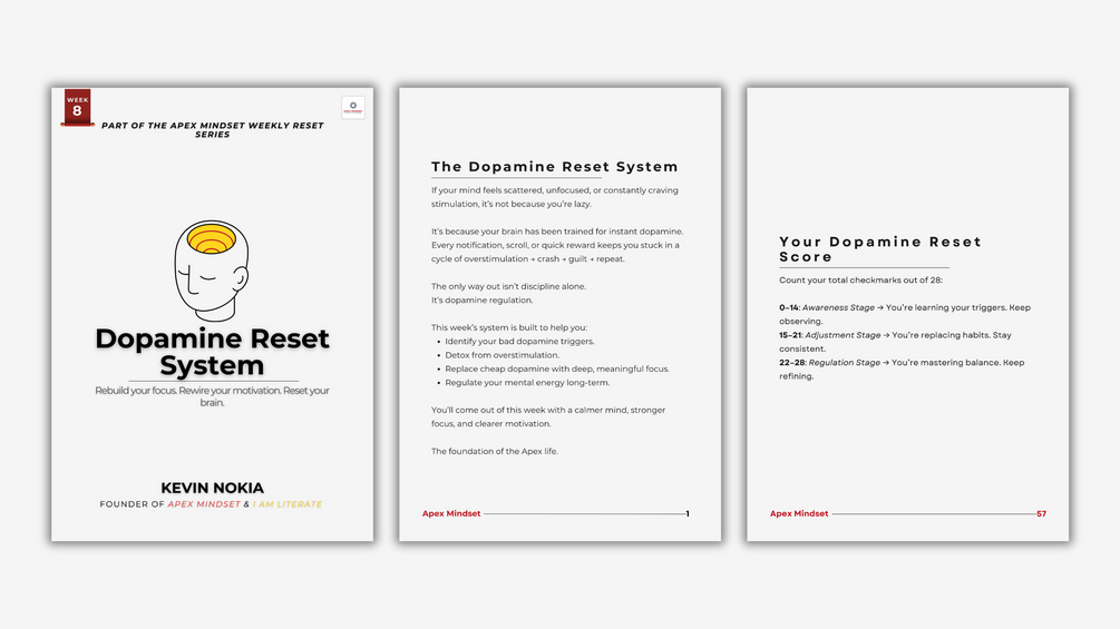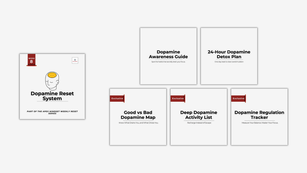 → Download Apex Weekly Pack 8: Dopamine Reset System and experience focus, clarity, and control within 24 hours.