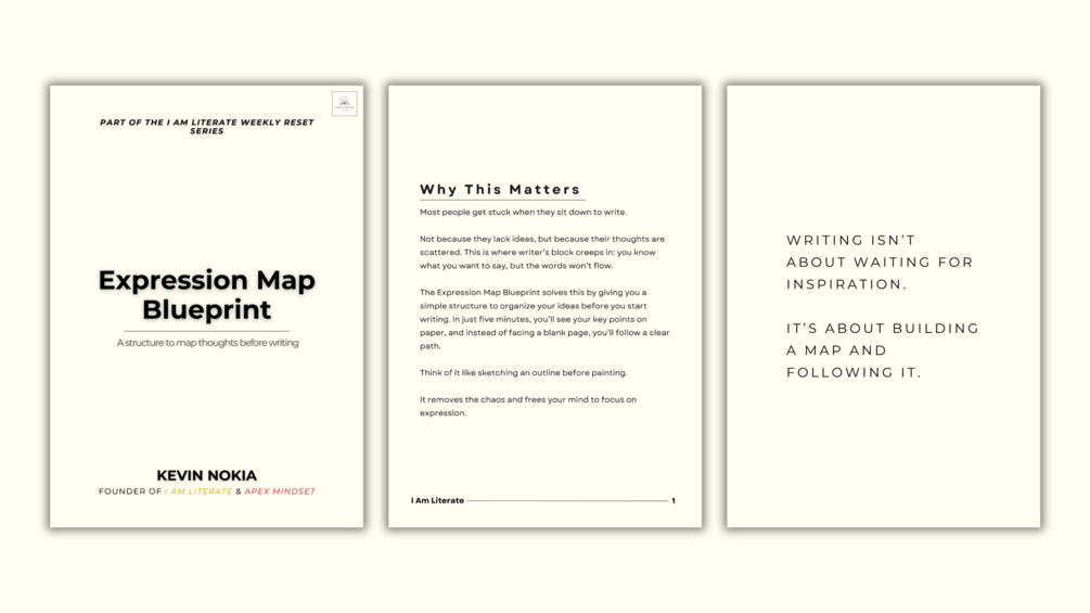 The Expression Map Blueprint gives you a simple, 3-step structure to map your ideas before you start writing. In just five minutes, you’ll have a clear outline that guides your words, eliminates hesitation, and helps your writing flow naturally.